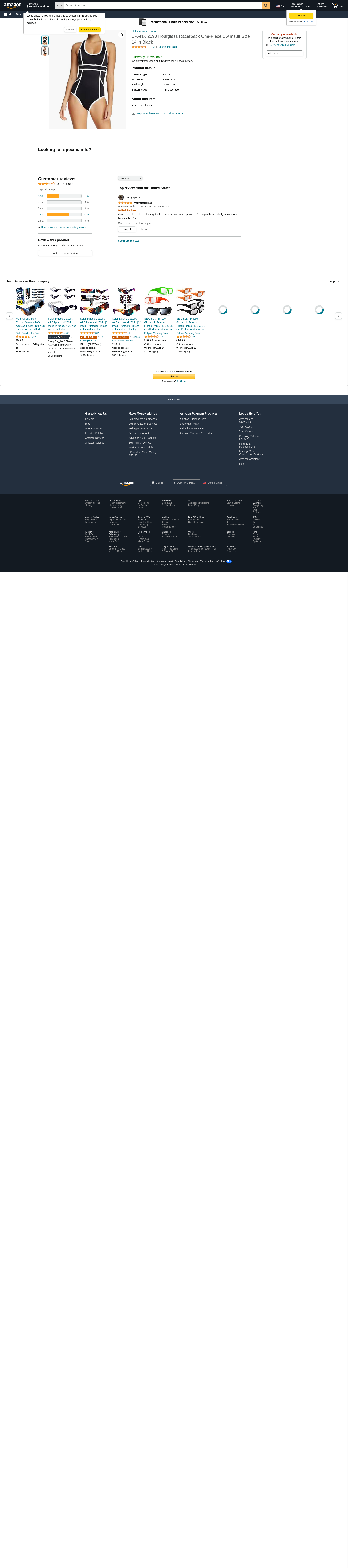 SPANX Hourglass Racerback One Piece Swimsuit (8, Black)