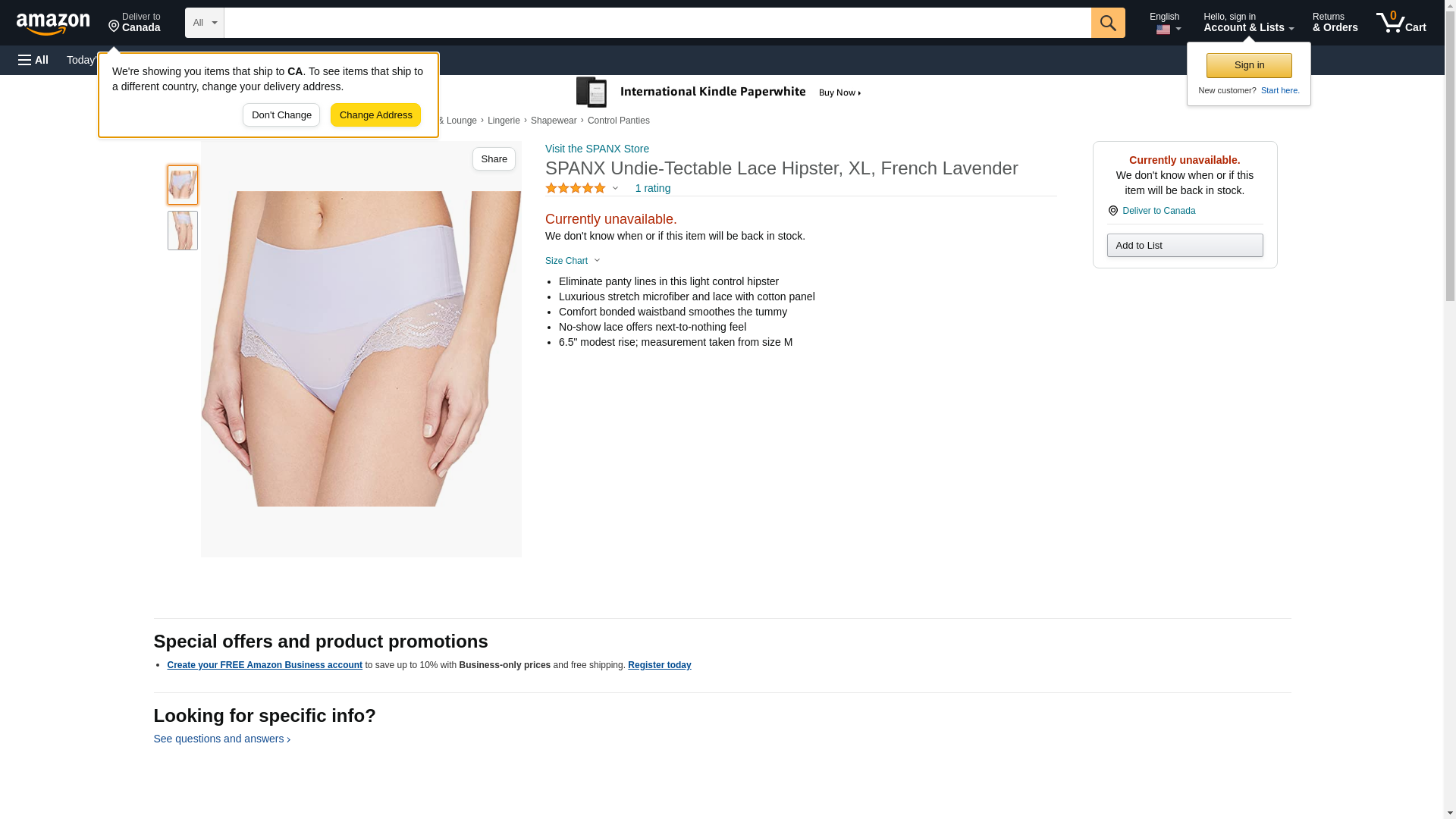 SPANX Undie-tectable Lace Hipster, L, French Lavender