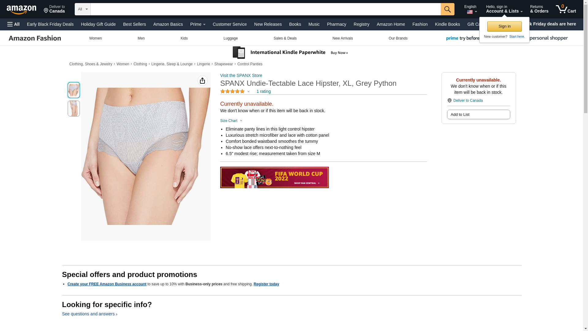 SPANX Undie-Tectable Lace Hipster, XL, Grey Python