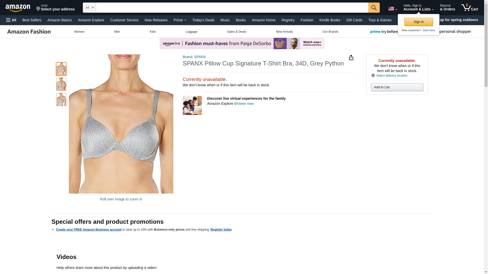 SPANX Pillow Cup Signature T-Shirt Bra, 34D, Grey Python