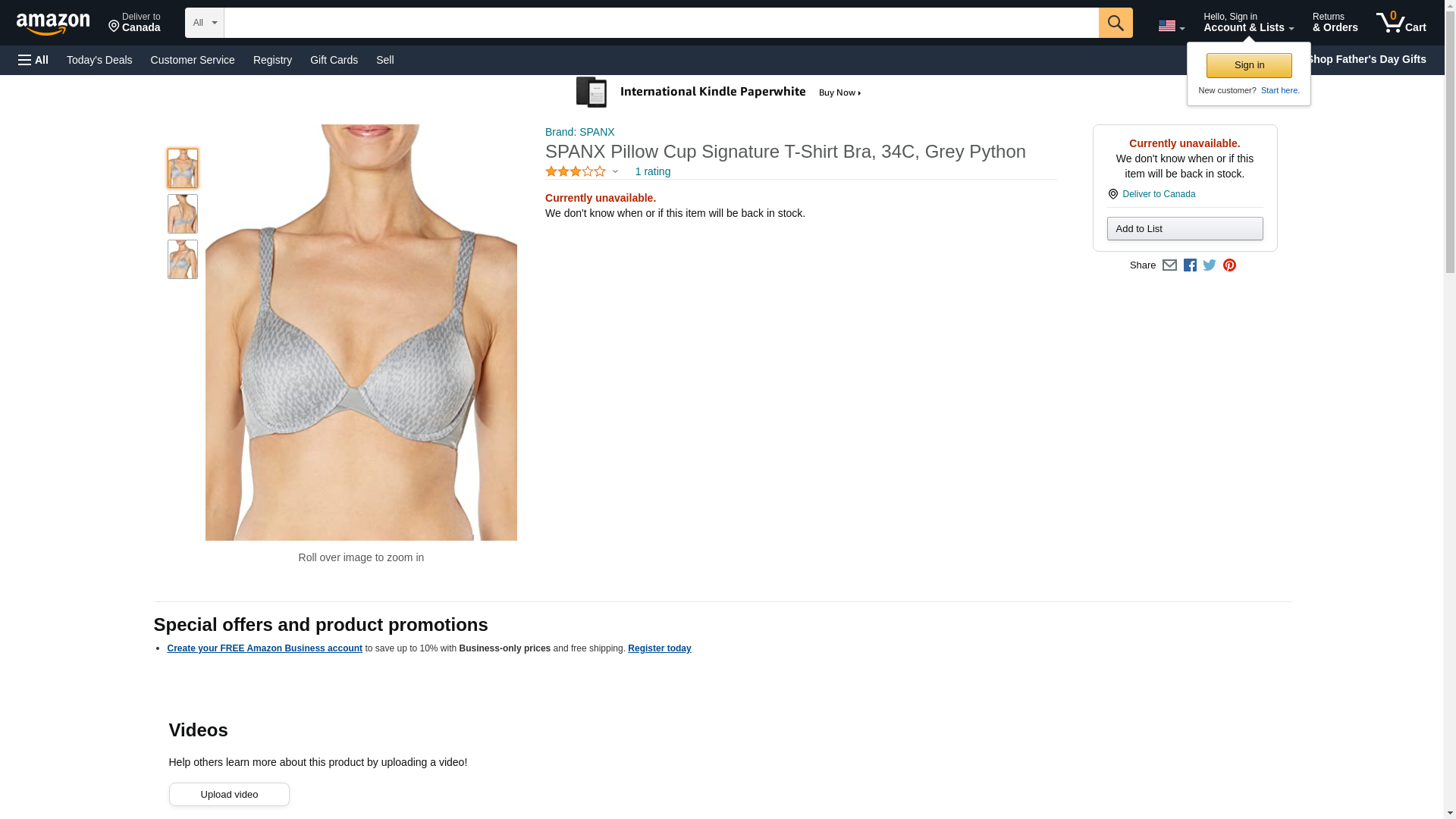 SPANX Pillow Cup Signature T-Shirt Bra, 34C, Grey Python