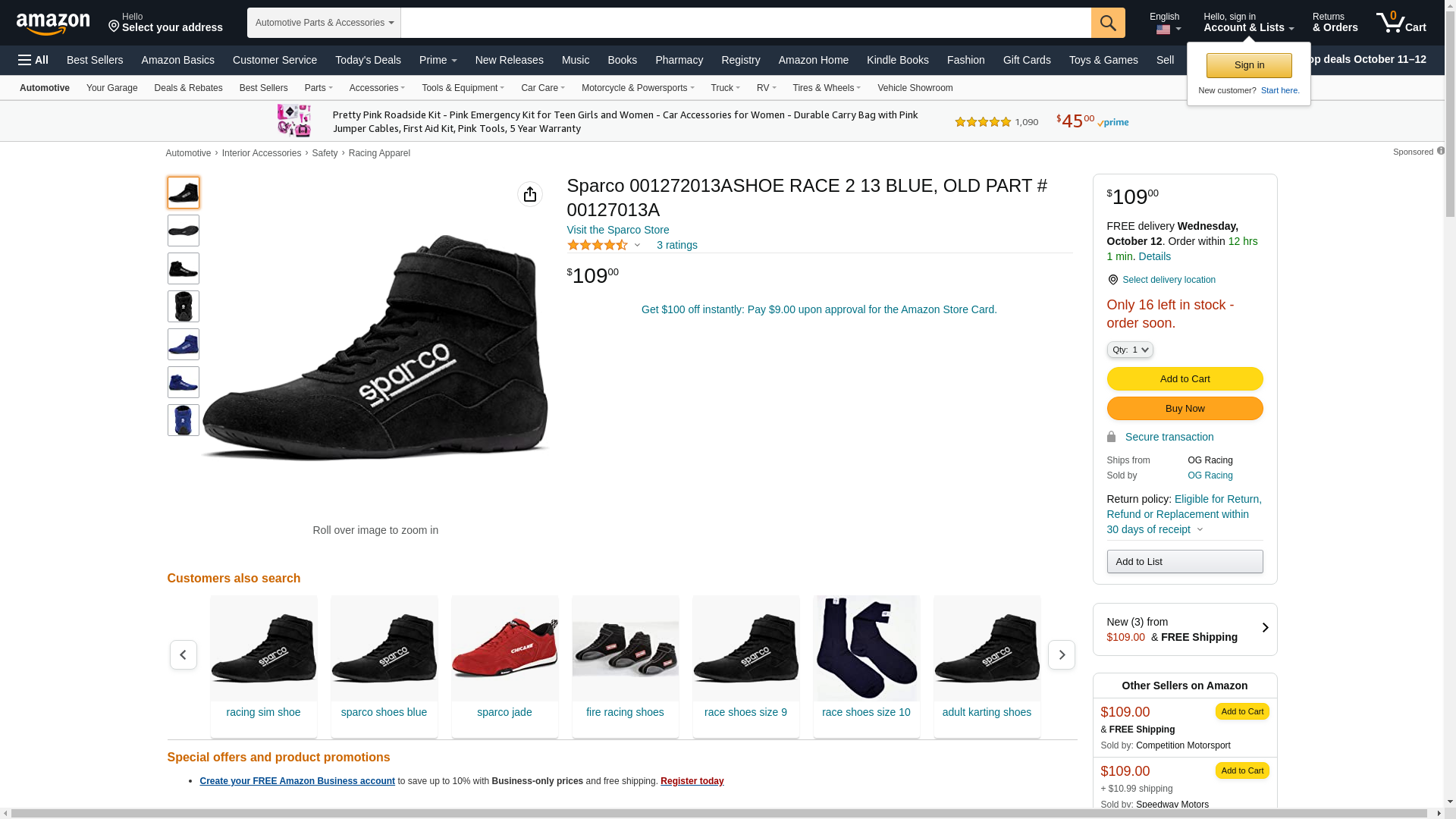 ![]() automotivestuff.com | SPARCO-001272013A | 1 | Add To Cart | 1 | 1 @ $112.38 |