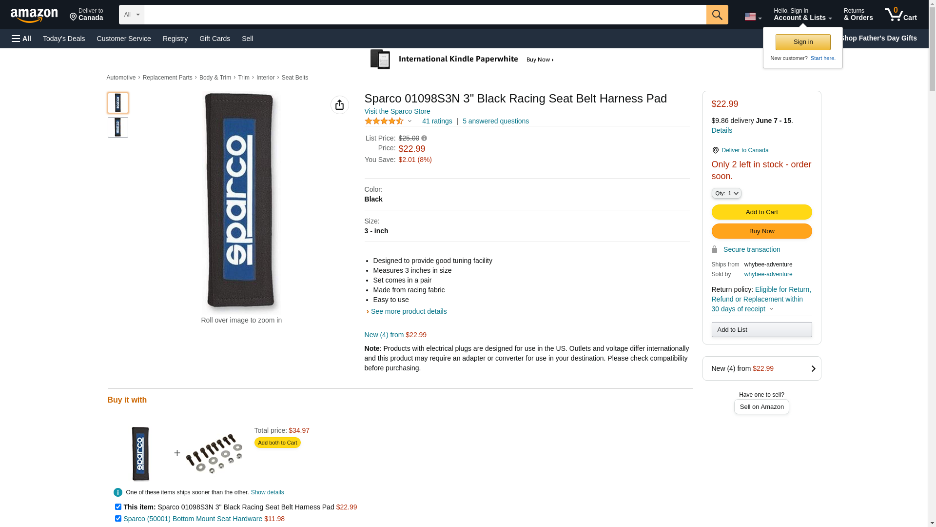 ![]() automotivestuff.com | SPARCO-01098S3N | 1 | -2 | 1 | 1 @ $39.83 |