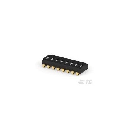 EU RoHS: Compliant ECCN (US): EAR99 Part Status: Active HTS: 8536.50.90.65 Type: DIP Switch Actuator Style: Recessed Slide Pole Throw Configuration: SPST Switch Configuration: OFF ON Number of Positions: 8 Maximum Current Rating (A): 0.025@24VDC Maximum Nonswitching Current (mA): 100 Maximum DC Voltage Rating (V): 24 Dielectric Strength: 500VAC Minimum Insulation Resistance (MOhm): 100 Maximum Contact Resistance (mOhm): 100 Electrical Life (Cycles): 2000 Mechanical Life (Cycles): 2000 Actuator Length (mm): 0 Seal: No Mounting: Surface Mount Termination Style: J-Bend Terminal Pitch (mm): 2.54 Number of Terminals: 16 Total Pitch (mm): 17.78 Row Space (mm): 6.5 Body Orientation: Straight Minimum Operating Temperature (°C): -20 Maximum Operating Temperature (°C): 85 Packaging: Tape and Reel Body Length (mm): 20.22 Body Depth (mm): 6 Body Height (mm): 2.75 Product Length (mm): 20.22 Product Depth (mm): 7.86 Product Height (mm): 3.45 Housing Color: Black