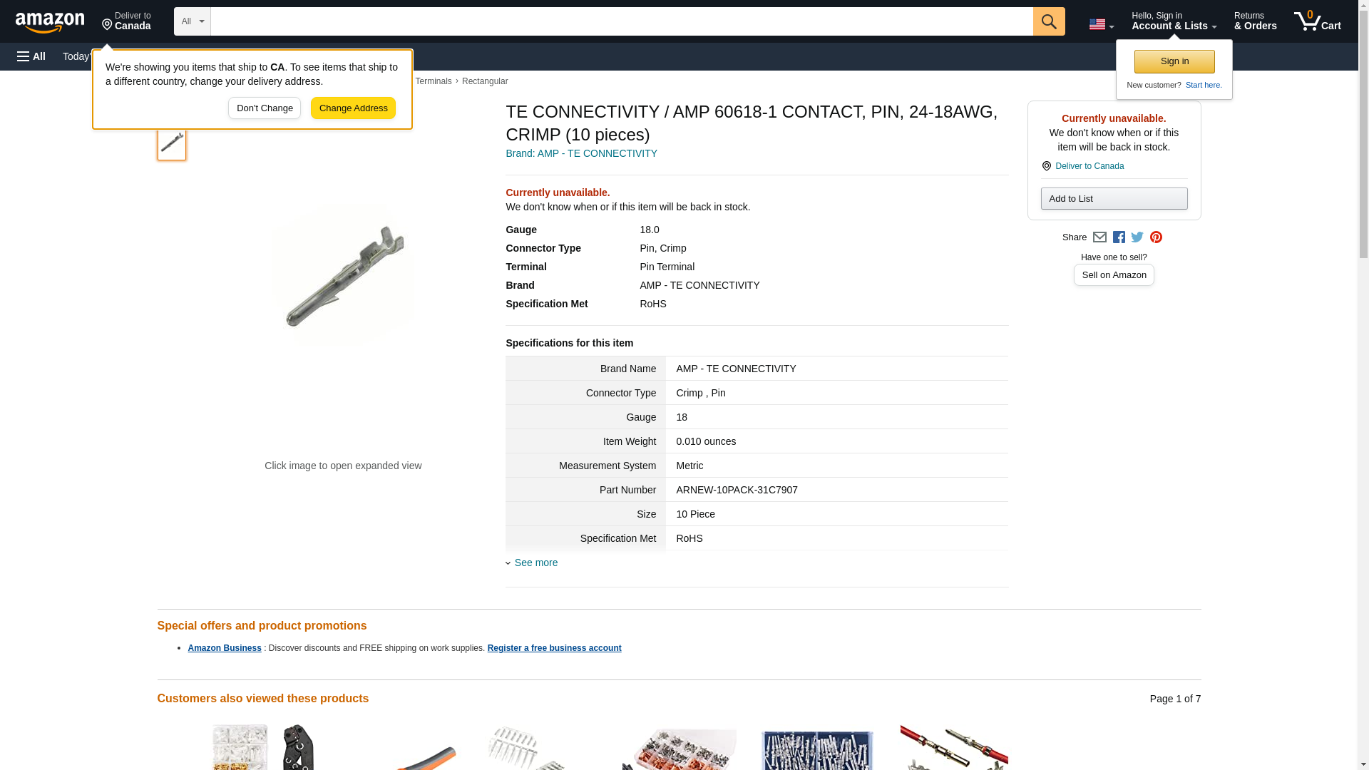 TE CONNECTIVITY / AMP 60618-1 CONTACT, PIN, 24-18AWG, CRIMP (10 pieces)