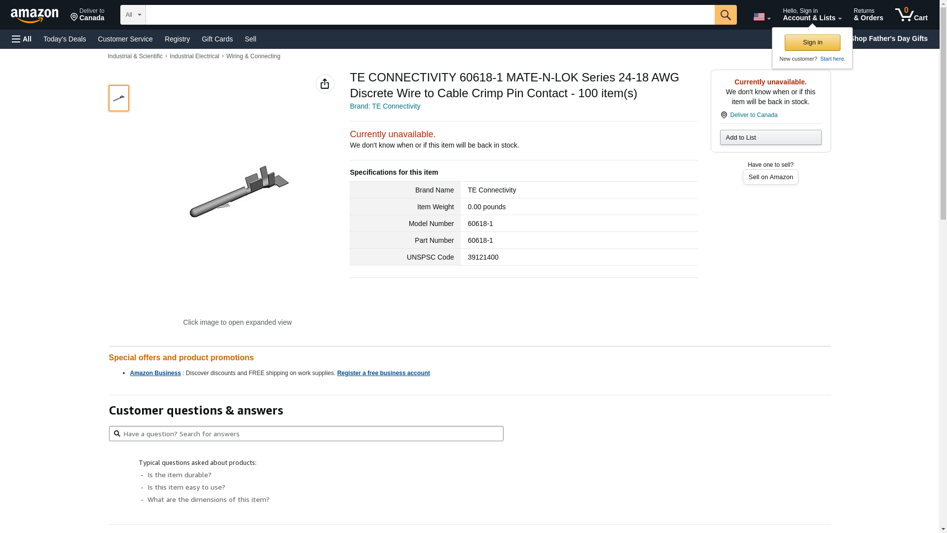 TE CONNECTIVITY 60618-1 MATE-N-LOK Series 24-18 AWG Discrete Wire to Cable Crimp Pin Contact - 100 item(s)