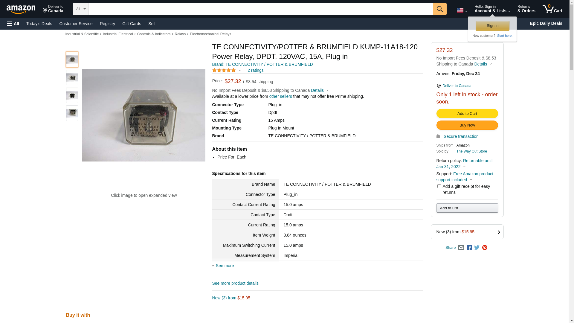 | Waldom | TE CONNECTIVITY POTTER-BRUMFIELD KUMP-11A18-120 | 3 | 1 | 3 @ $18.21, 17 @ $15.87 |