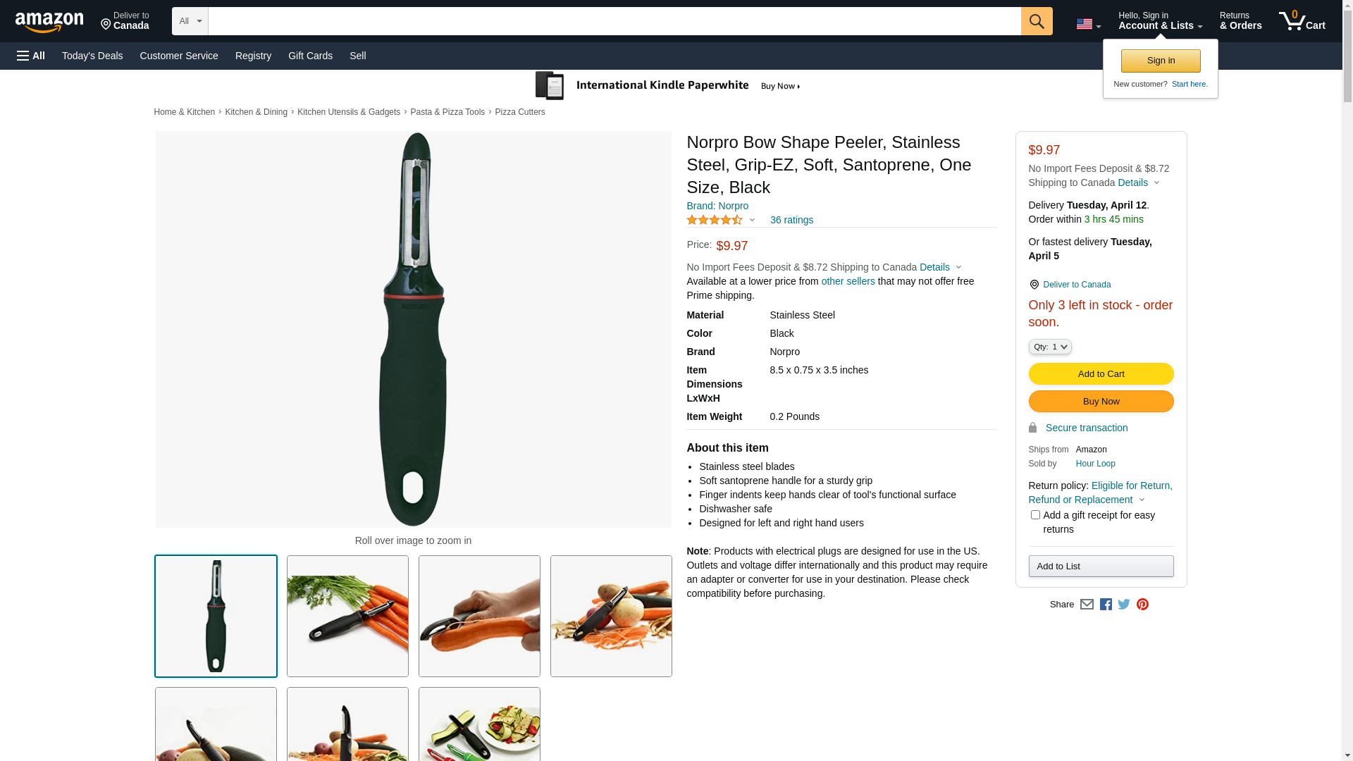 Norpro Bow Shape Peeler, Stainless Steel, Grip-EZ, Soft, Santoprene, One Size, Black