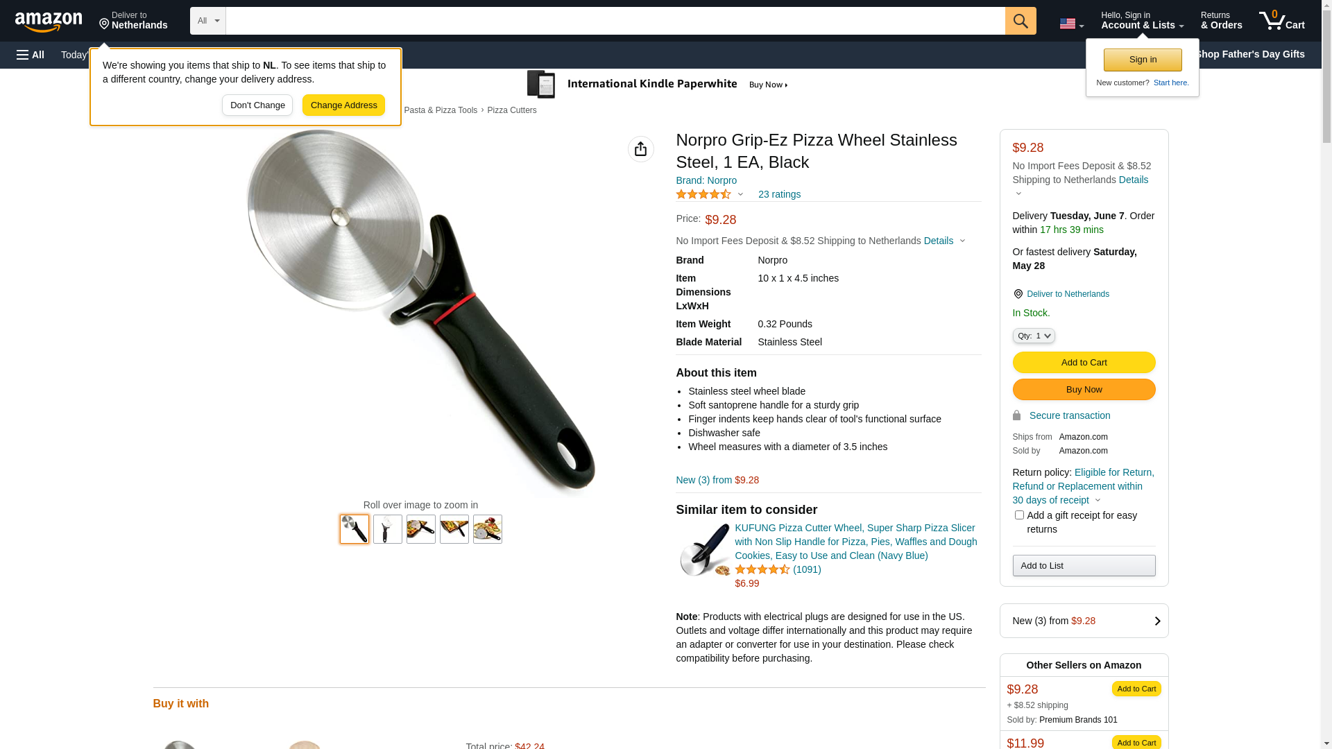 Norpro Grip-Ez Pizza Wheel Stainless Steel, 1 EA, Black