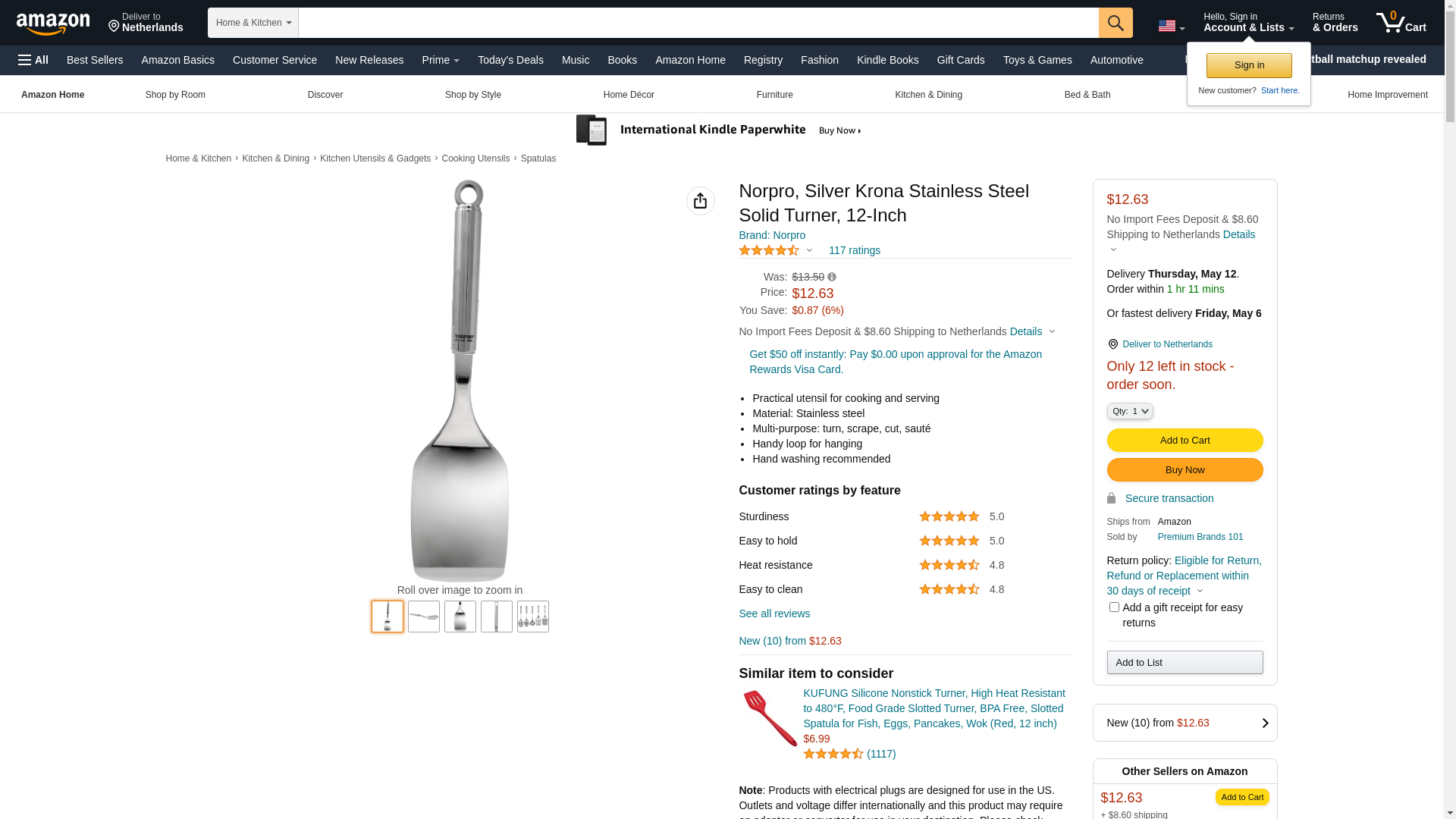 Norpro, Silver Krona Stainless Steel Solid Turner, 12-Inch
