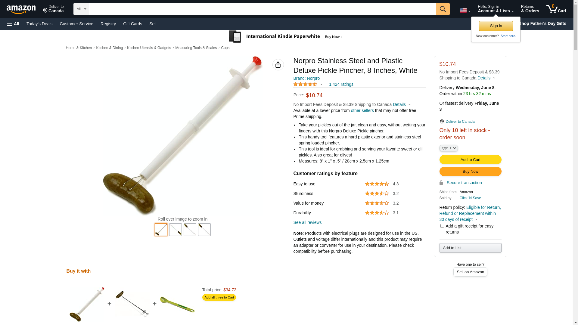 Norpro Stainless Steel and Plastic Deluxe Pickle Pincher, 8-Inches, White: Maxedbuy.com