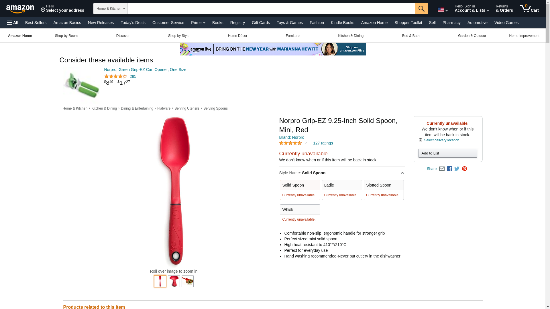 Norpro 1697 Grip-EZ 9.25-Inch Solid Spoon, Mini, Red. Comfortable non-slip, ergonomic handle for stronger grip. Perfe...
