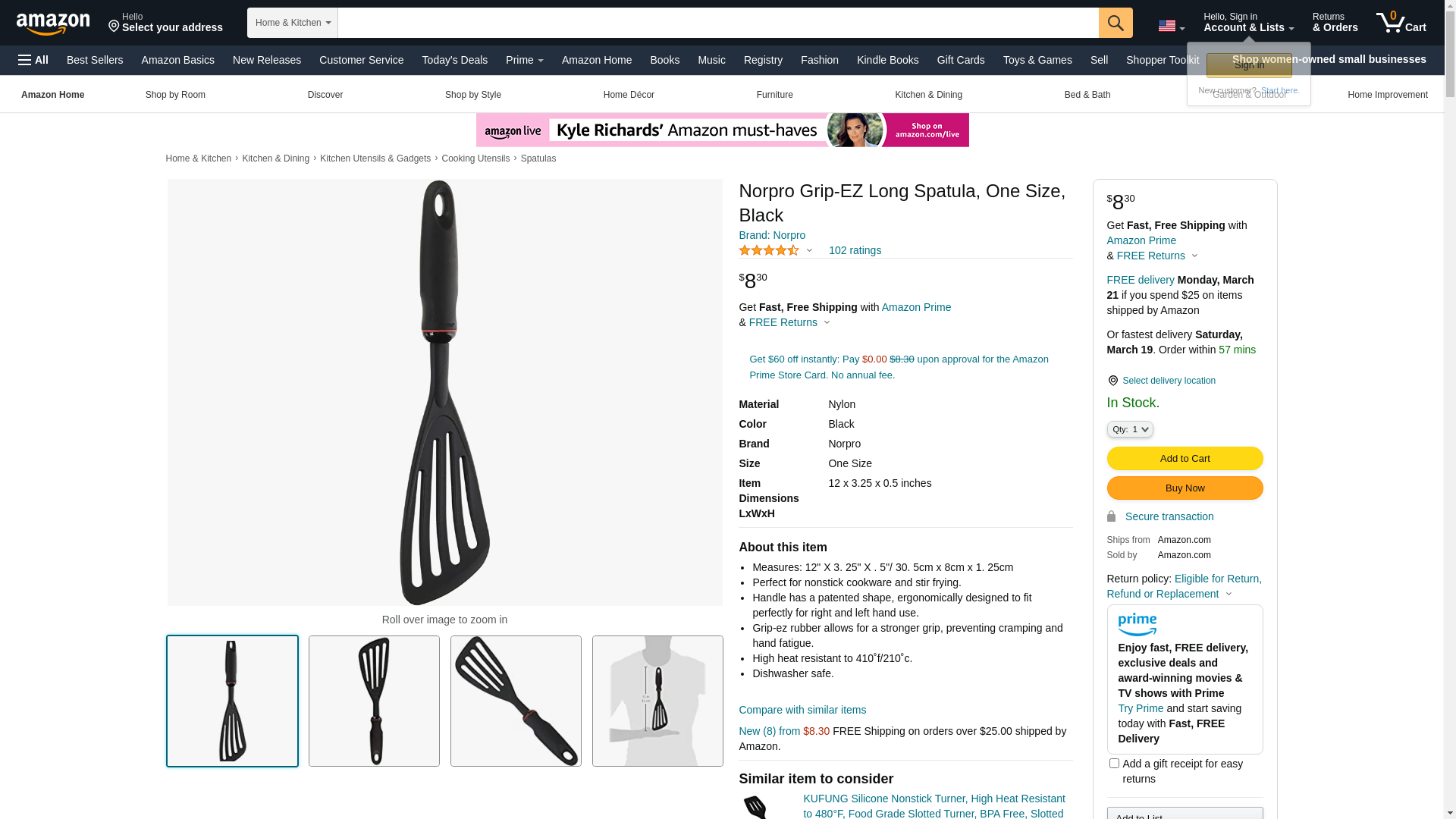 Norpro Grip-EZ Long Spatula, One Size, Black