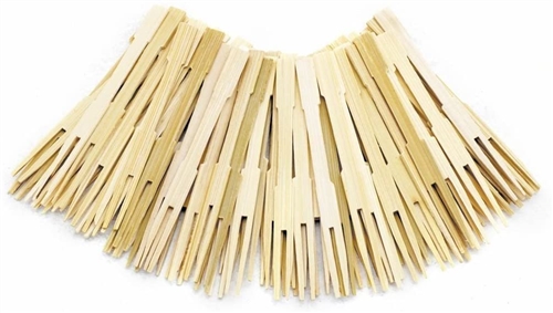 These natural bamboo party forks are ideal for managing items at the buffet or on an appetizer tray. They are also perfect for use with fondues and chocolate fountains, as the two prongs hold fruit, marshmallows, and other items on the fork.<BR>Pack of 72<BR>Size: 3½"<BR>Dimensions: 3½"L x ¼"W x 1/16"Thick<BR>Materials: Natural bamboo
