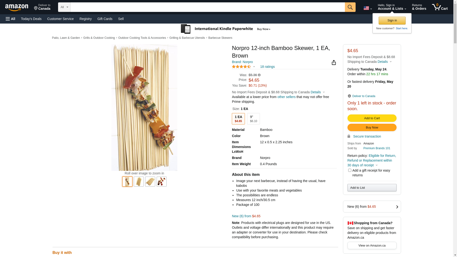 Norpro 12-inch Bamboo Skewer, 1 EA, Brown
