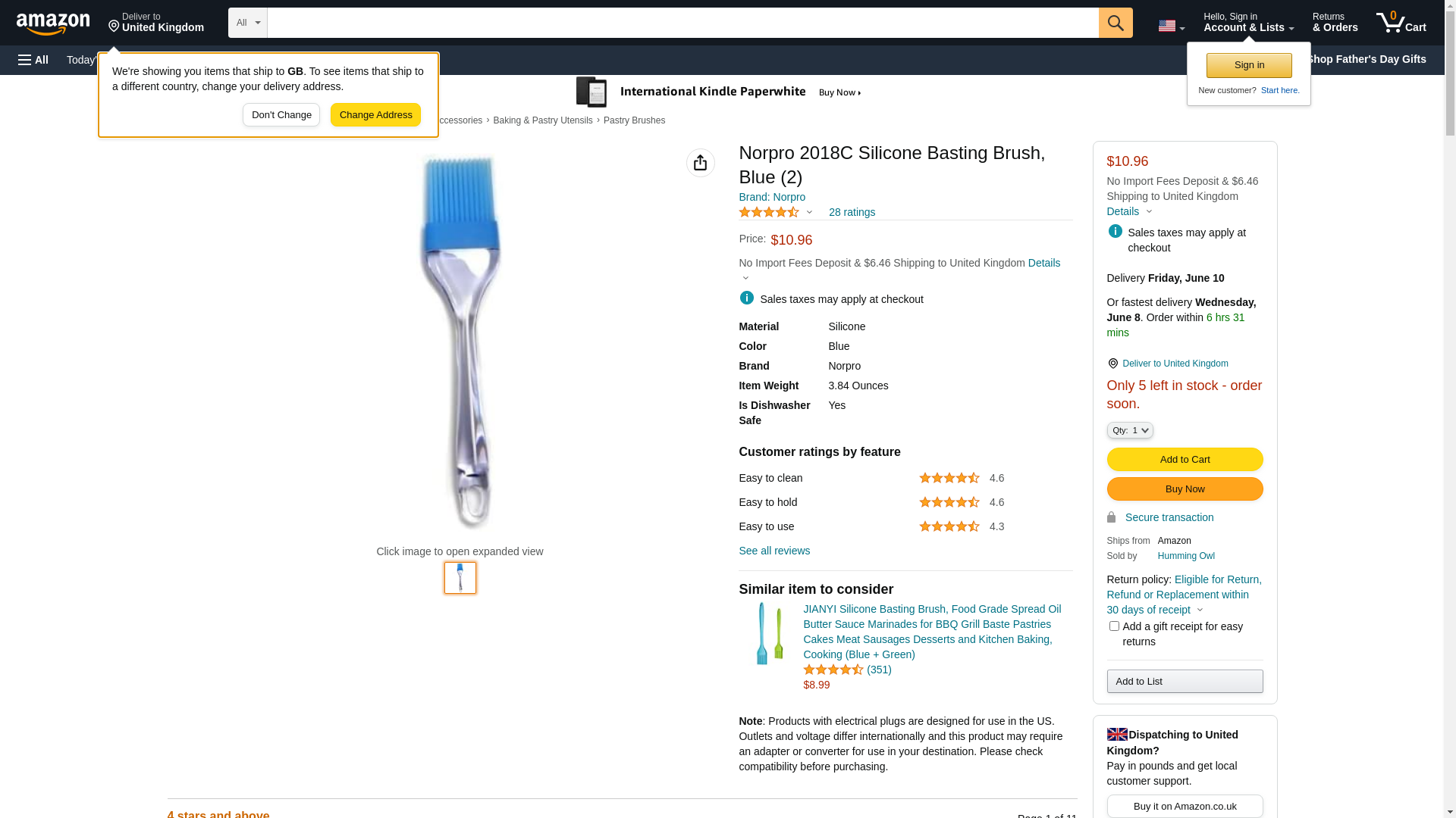 <b>Norpro Silicone Brush, Blue</b> Norpro's high quality silicone brush is a kitchen essential for your baking and cooking needs. Silicone won't stain, lose shape or retain odor. Silicone is high heat resistant to 400F/205C. Handle is made of beautifully colored clear-blue-tone acrylic.