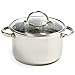 - Set includes stainless steel stockpot, steamer insert and vented, tempered glass lid.