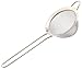 Mesh screen for sifting or straining out unwanted liquid and excess moisture. Features a long handle and a resting ring designed to fit over pots and bowls. Measures 3 inch/7.5cm diameter. Stainless steel construction.