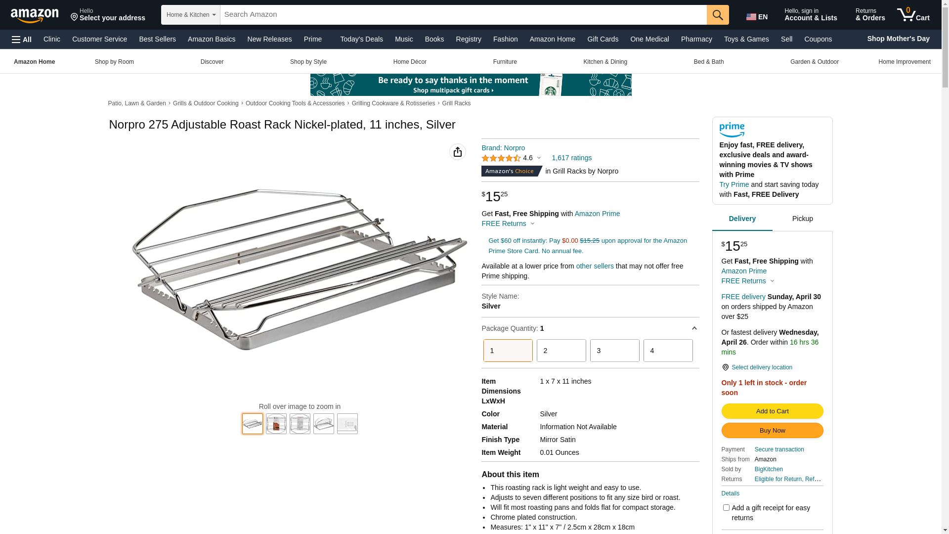 Norpro 275 Adjustable Roast Rack Nickel-plated, 11 inches, Silver