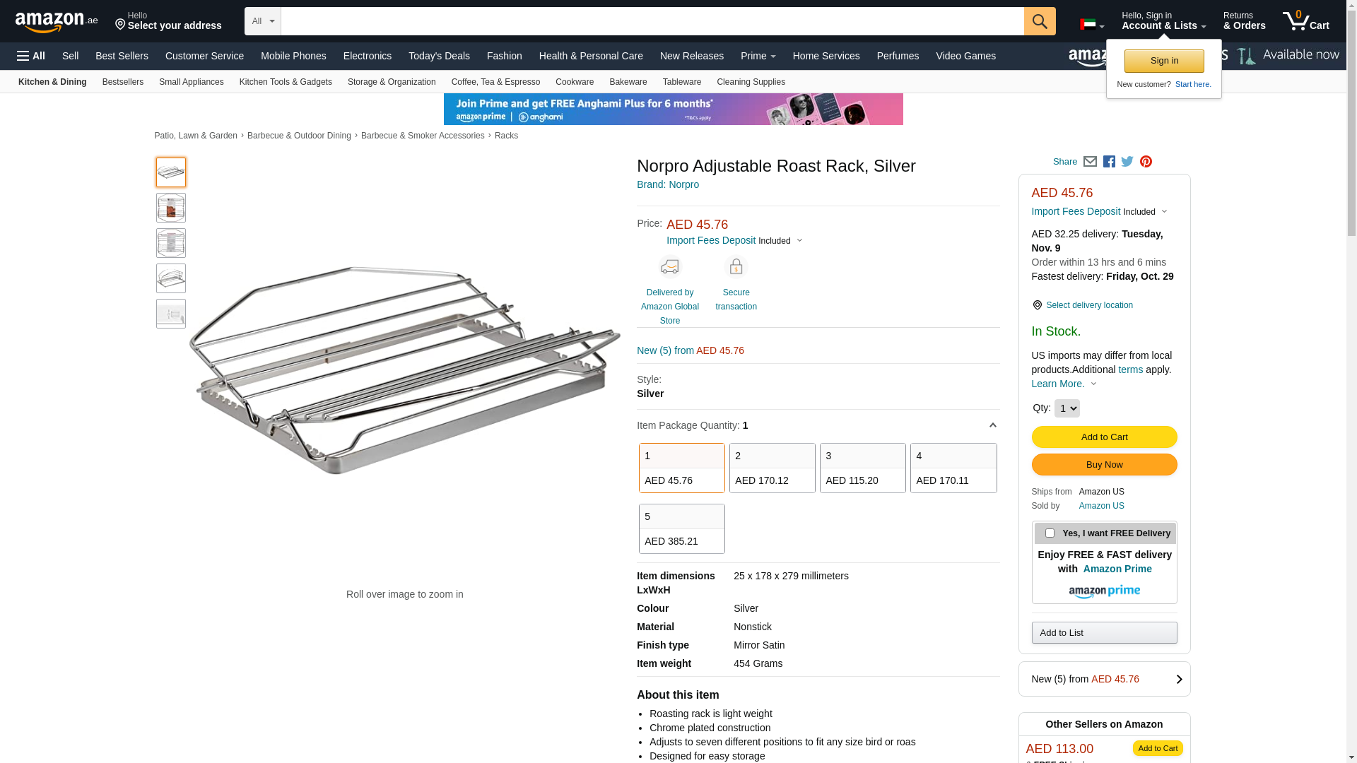 This roasting rack is light weight and easy to use. Will fit most roasting pans. Adjusts to 7 different positions to fit any size bird or roast. Ideal for all meats; beef, veal, pork, poultry and lamb. Provides even heat circulation for better browning and less shrinking. Folds flat for compact storage. Chrome plated construction. Heavy duty with wide handles for safe and easy lifting. Hand washing recommended. Measures: 1-Inch Height X 11-Inches Length X 7-Inches Width (2-Count)