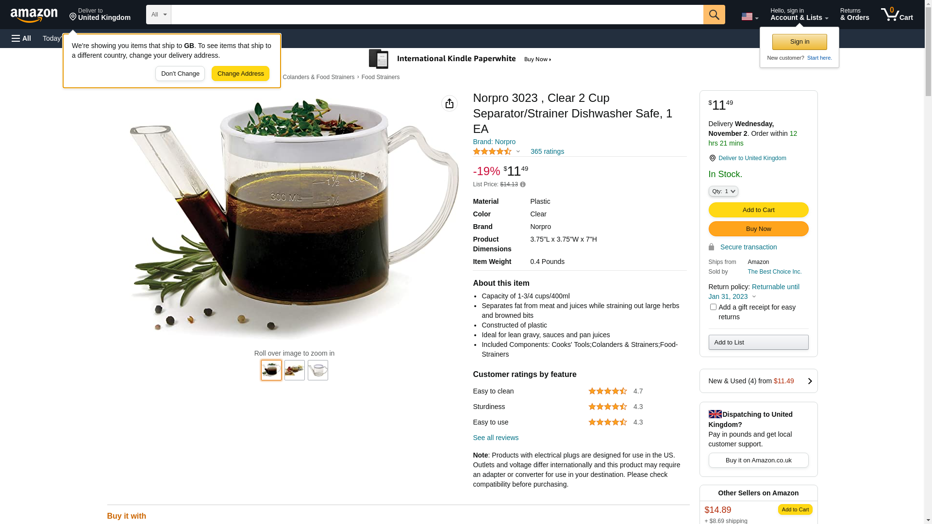 Norpro 3023 , Clear 2 Cup Separator/Strainer Dishwasher Safe, 1 EA