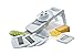 - Includes five stainless steel blades for fine and coarse grating or shredding, 3-7mm slicing, including wedge or waffle cuts and 6mm or 9mm French fry/julienne cuts. Also a safety food holder guard that doubles as a citrus juicer.