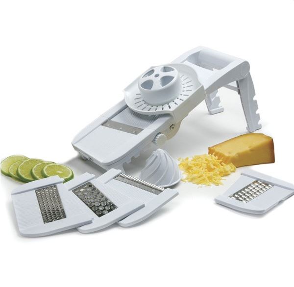 - Create uniform and even slices to give dishes a nice presentation for get-togethers, holidays, potlucks or a family dinner. Blades with different sizes and shapes allow for serveral types of slicing, dicing and grating. Grate carrots, julienne potatoes, shred cabbage and slice apples all with one tool!