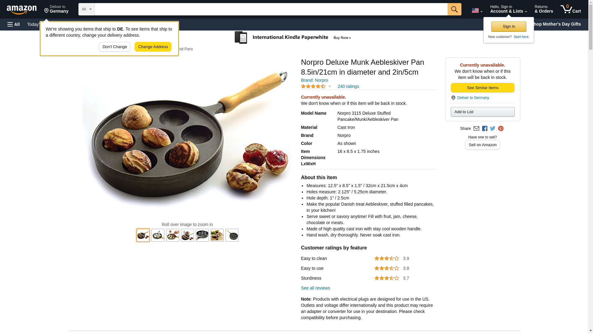 Norpro 3115 Deluxe Munk Aebleskiver Pan. Measures 8.5 inches/21.5cm. Hole size is 2.25 inches by 1.5 inches. Made of ...