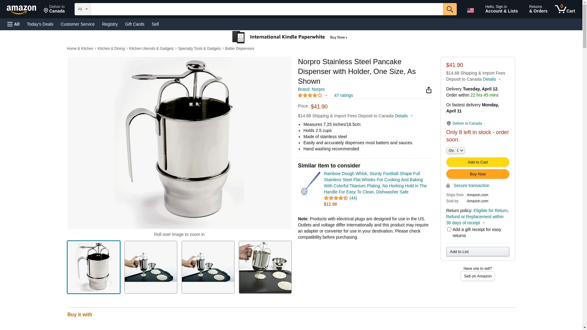 Norpro Stainless Steel Pancake Dispenser with Holder, One Size, As Shown