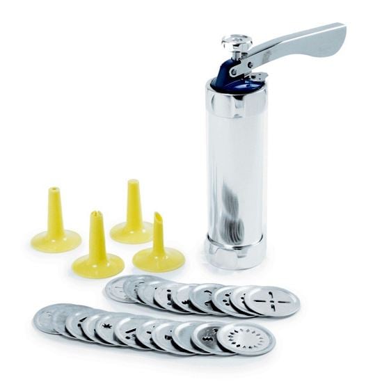 - Kit includes 20 discs, an icing gun, 4 icing tips and an instruction booklet and recipes to get you started