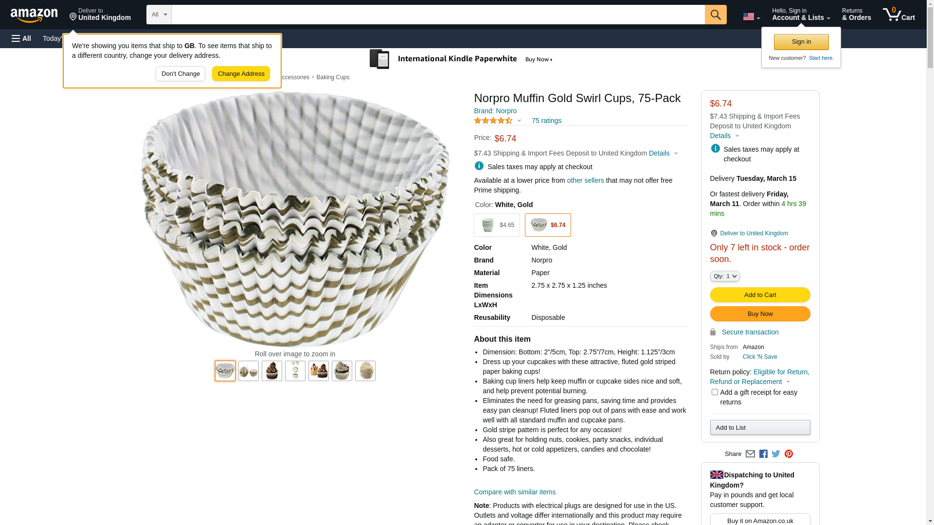 Norpro Muffin Gold Swirl Cups, 75-Pack