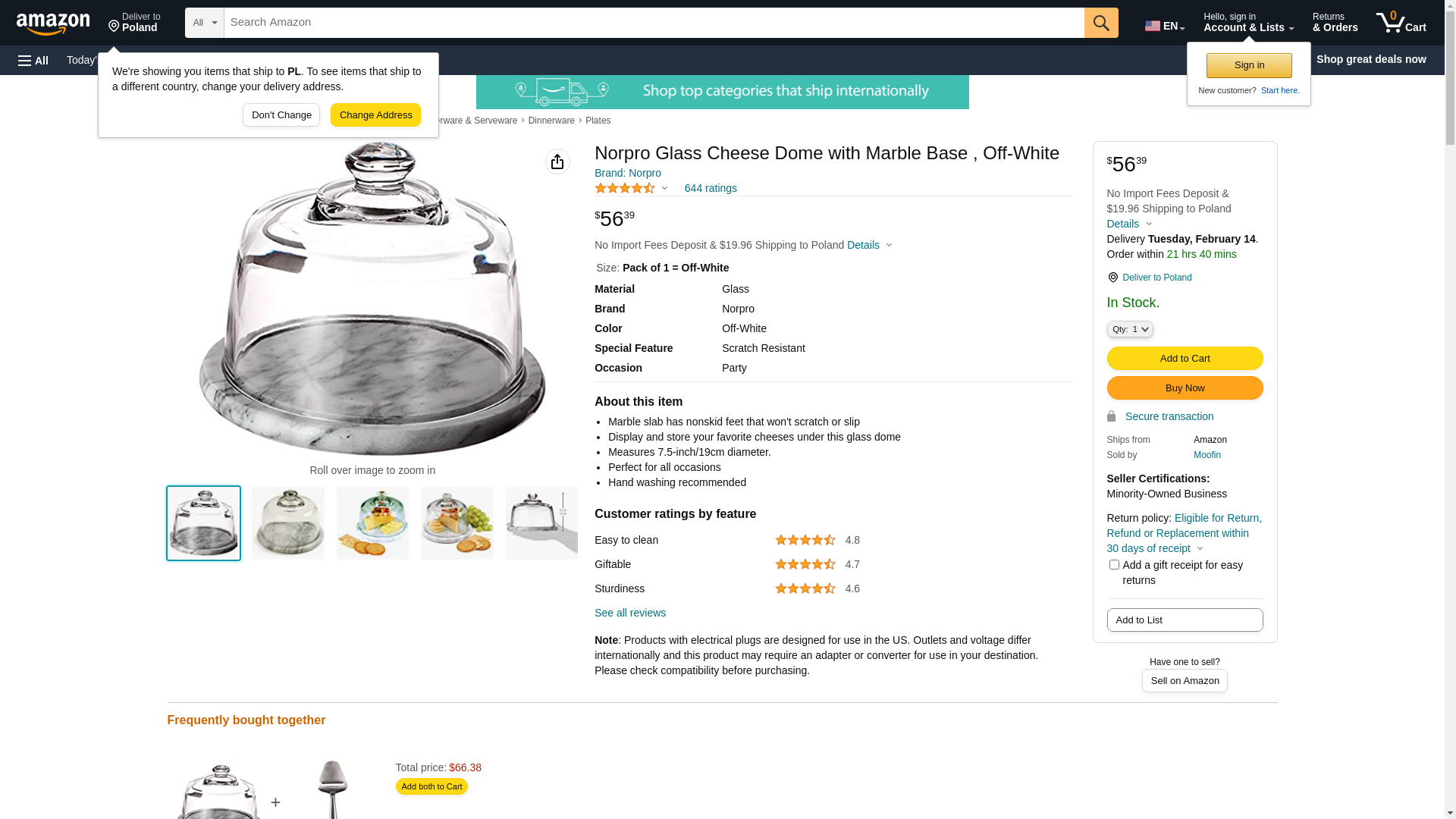 Norpro Glass Cheese Dome with Marble Base , Off-White