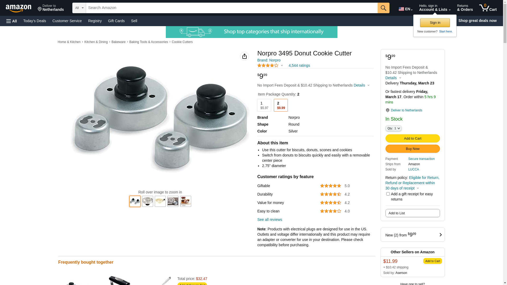 Norpro 3495 Donut, Cookie Cutter. Removable center piece. Measures 23/4-inch /7cm diameter. Hand washing recommended