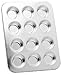 Norpro 12 Cup Tin Mini Muffin Pan. Mini Muffin size, top 1.75 inches/4.5cm, bottom 1.25 inches/3cm and depth .75 inch...