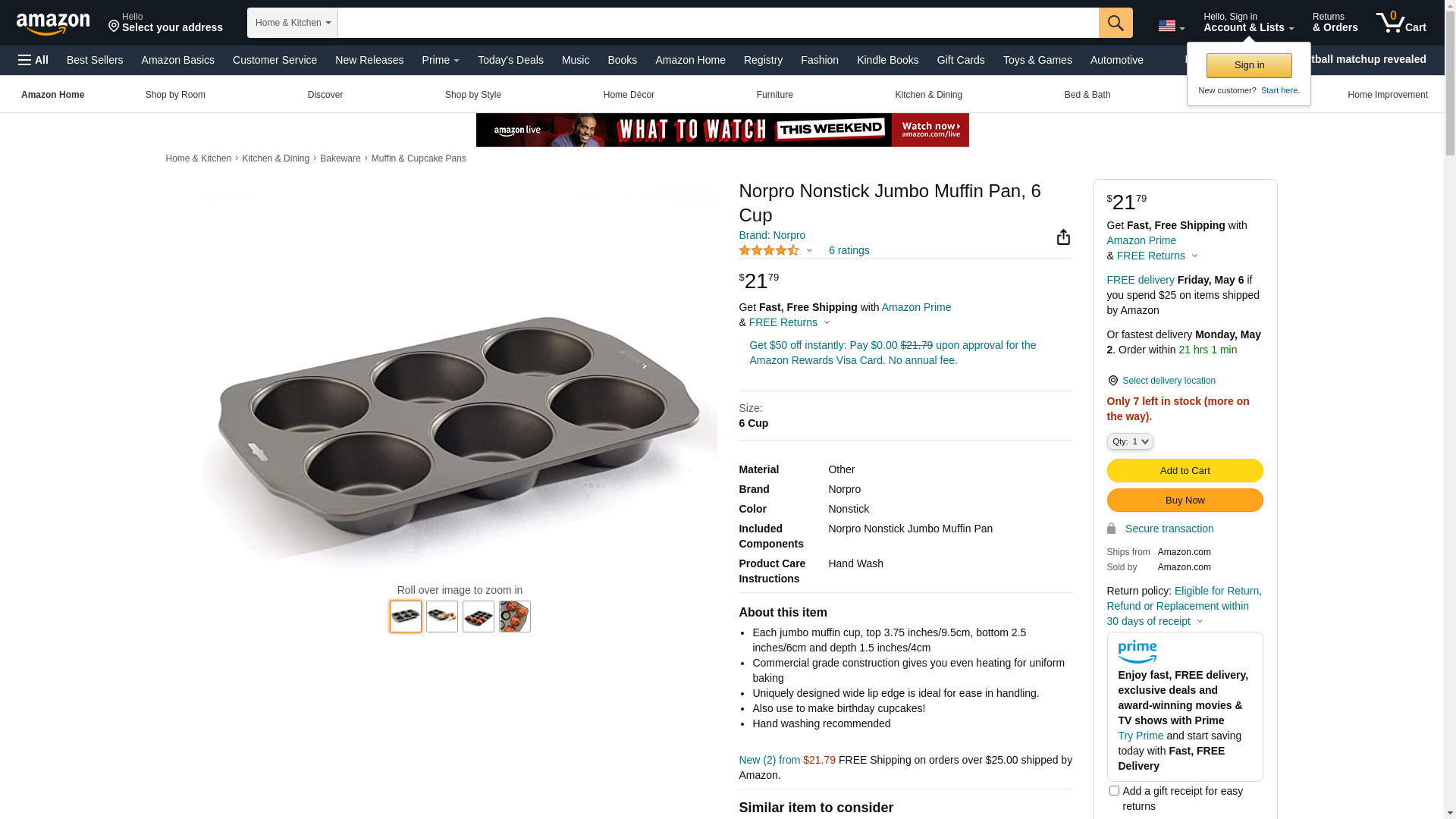 Norpro Nonstick Jumbo Muffin Pan, 6 Cup
