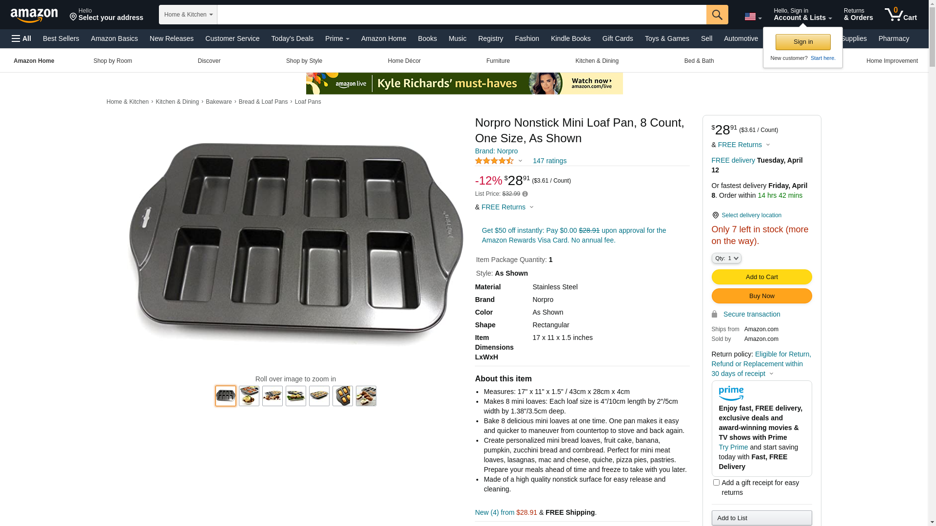 Norpro Nonstick Linking Mini 8 Bread Loaf Meatloaf Fruitcake Dessert Pan 3943. Each loaf size is, 4.25 inches/11cm le...