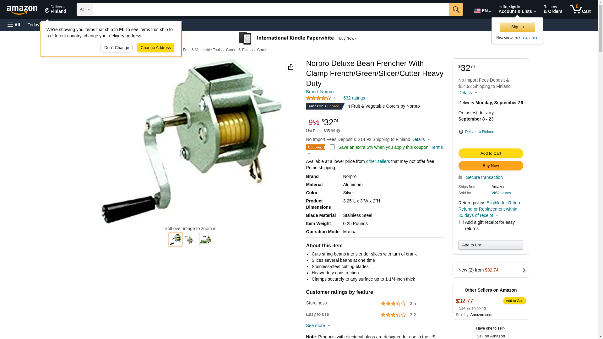 Norpro Deluxe Bean Frencher With Clamp French/Green/Slicer/Cutter Heavy Duty, Manual, Aluminum, Silver