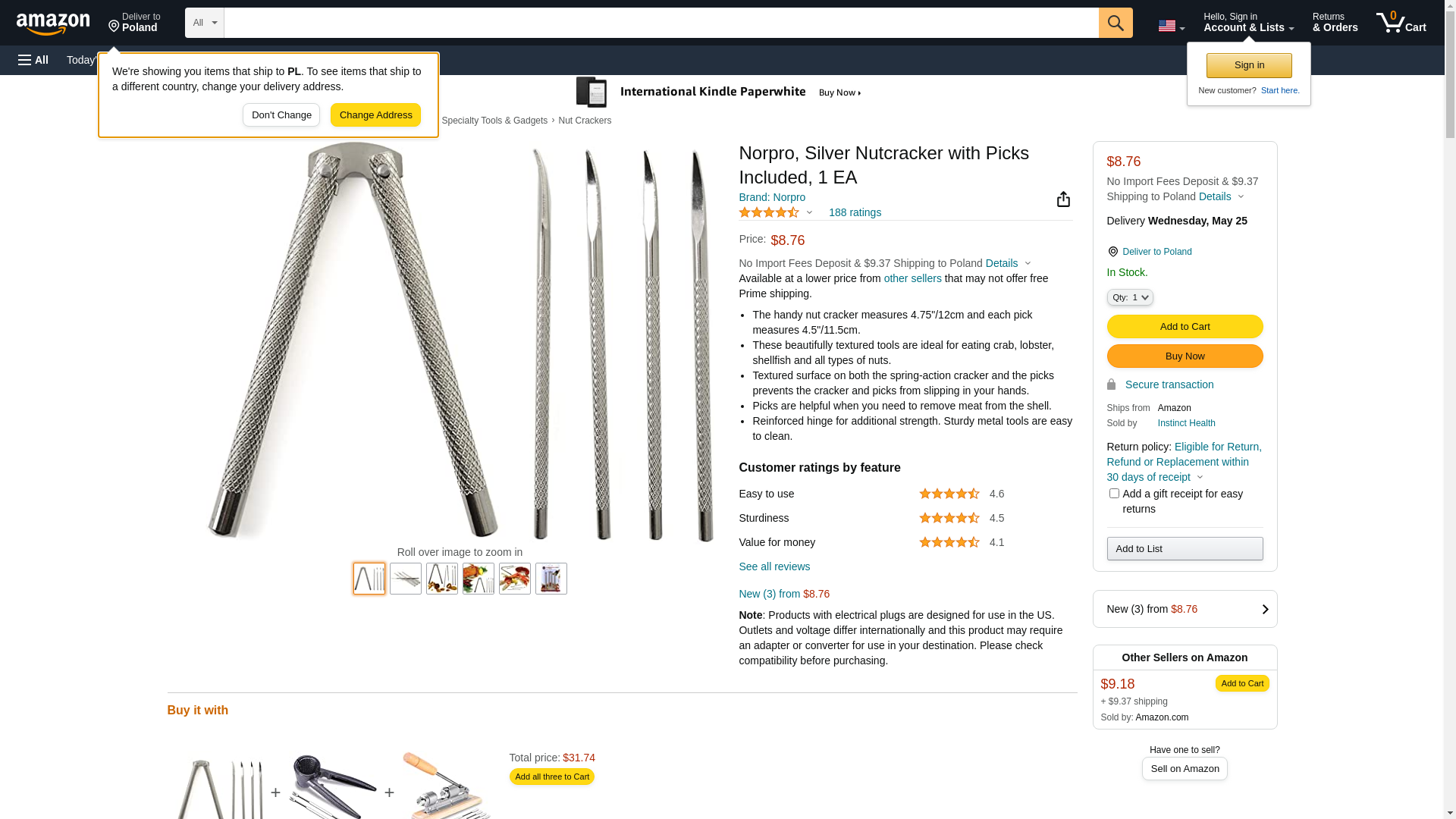 | Feature | The handy nut cracker measures 4.75"/12cm and each pick measures 4.5"/11.5cm. |