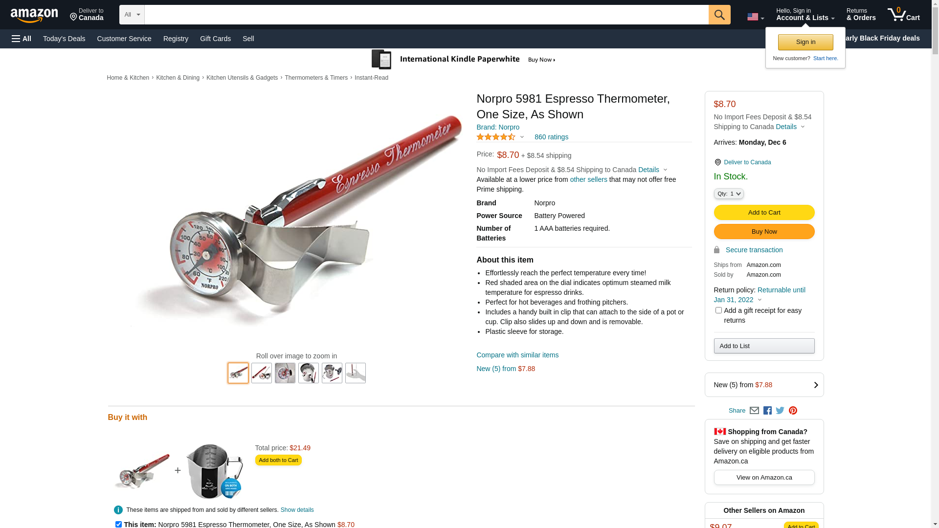 Norpro 5981 Espresso Thermometer, One Size, As Shown