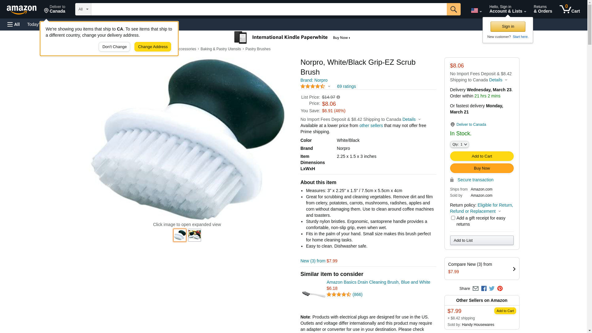 Norpro, White/Black Grip-EZ Scrub Brush