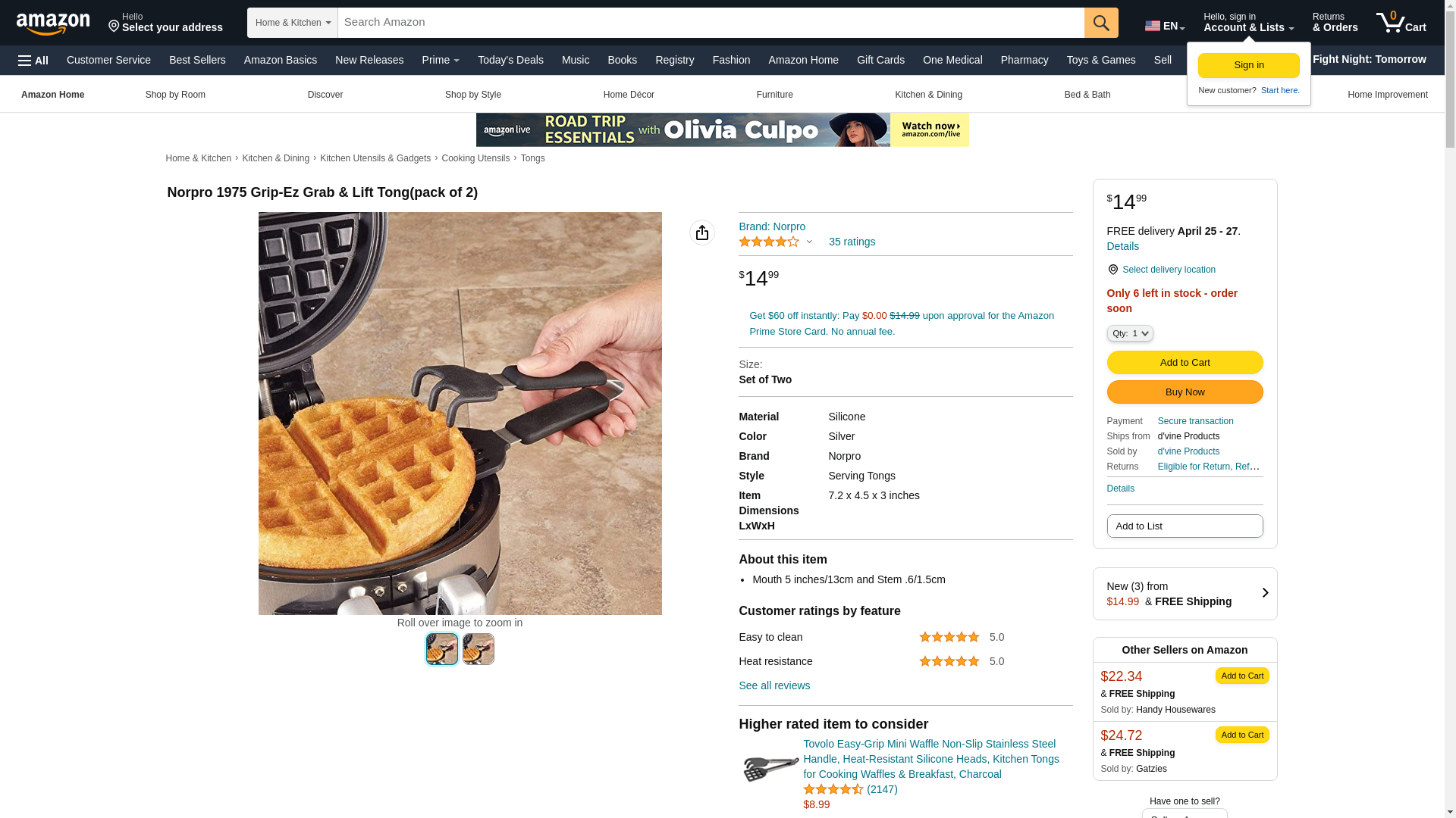 Norpro 1975 Grip-EZ Grab and Lift Silicone Tong (2, Set of one)
