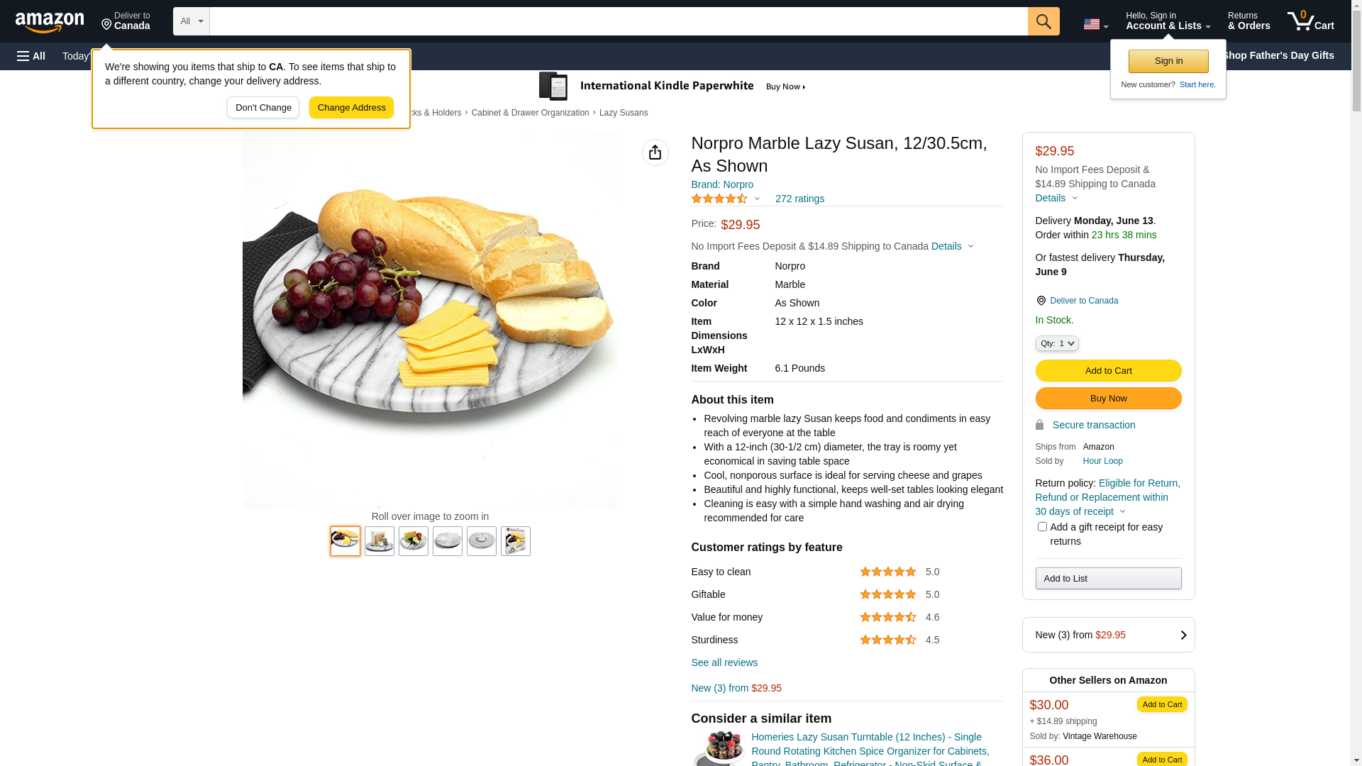 | Feature | Revolving marble lazy Susan keeps food and condiments in easy reach of everyone at the table |