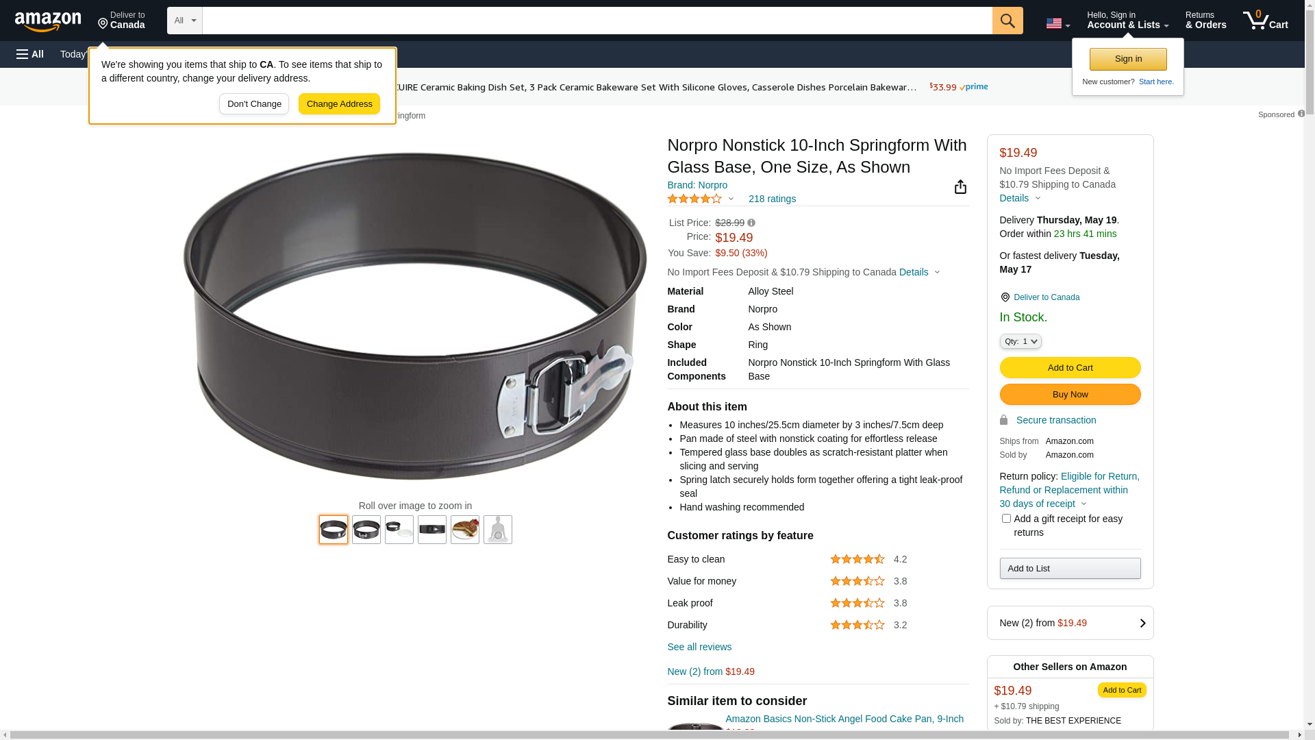 Norpro Nonstick 10--Inch Springform With Glass Base. Measures 10 inches/25.5cm diameter by 3 inches/7.5cm deep. Pan m...