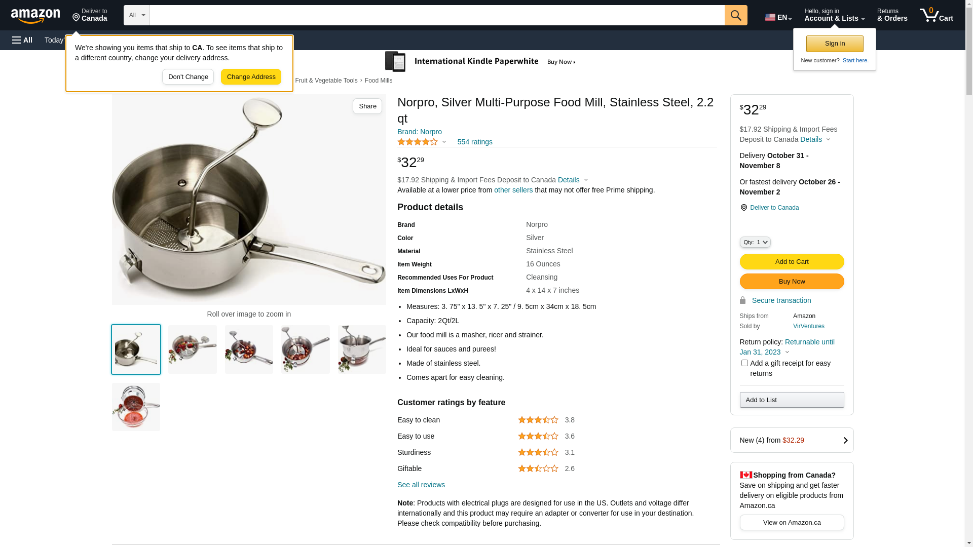 | Feature | Norpro 593 Stainless Steel Food Mill |
