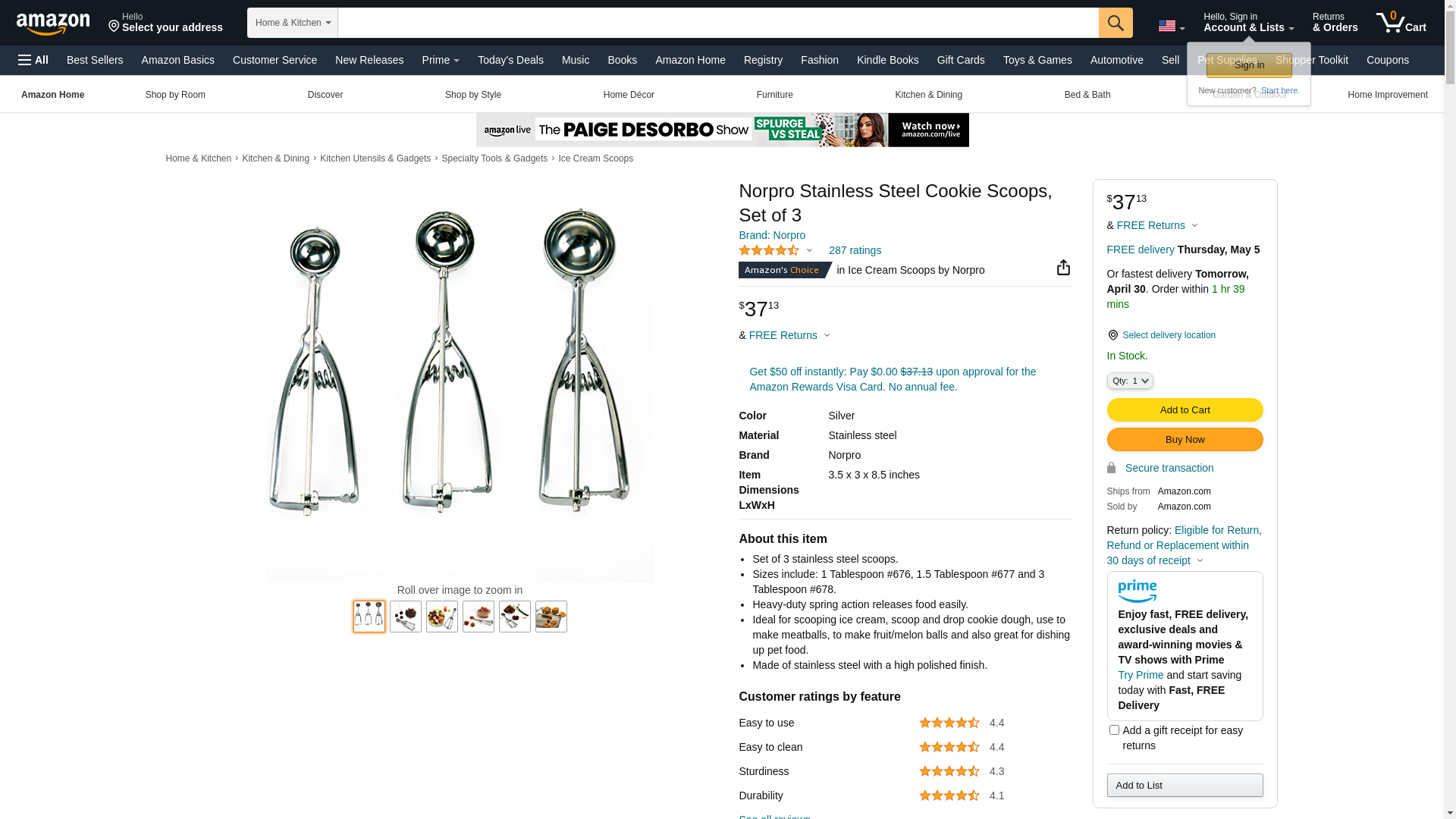 Norpro Stainless Steel Cookie Scoop Set of 3. Set of 3 stainless steel scoop. Sizes include: 1 tablespoon #676, 1.5 t...