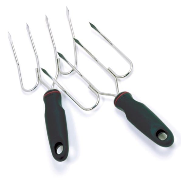 Grip-EZ Roast/Turkey Lifter Set, 2 Stainless Steel Forks With Santopreme Handles For Easy Grip, Carded.