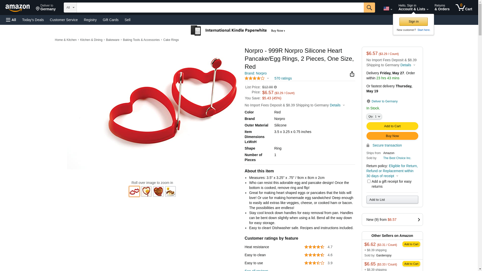 Norpro - 999R Norpro Silicone Heart Pancake/Egg Rings, 2 Pieces, One Size, Red