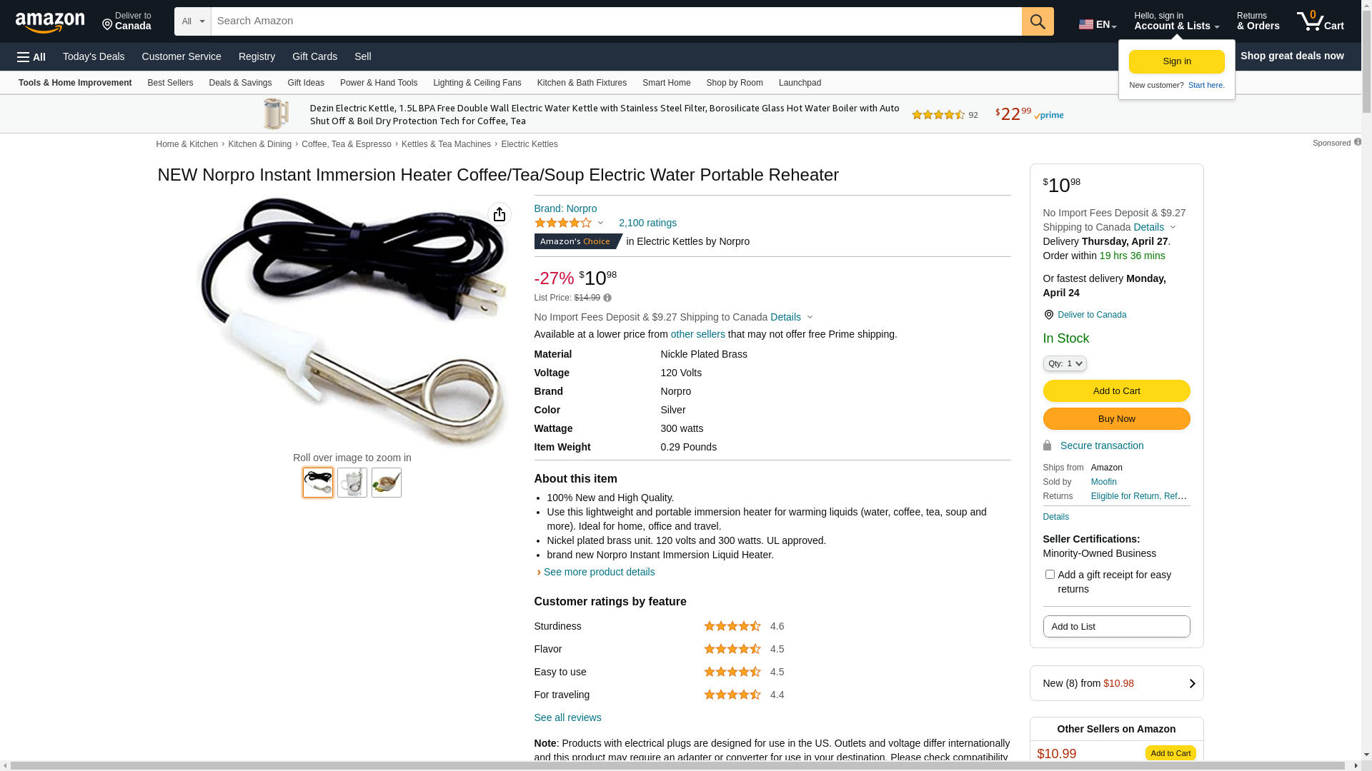 NEW Norpro Instant Immersion Heater Coffee/Tea/Soup Electric Water Portable Reheater: Maxedbuy.com