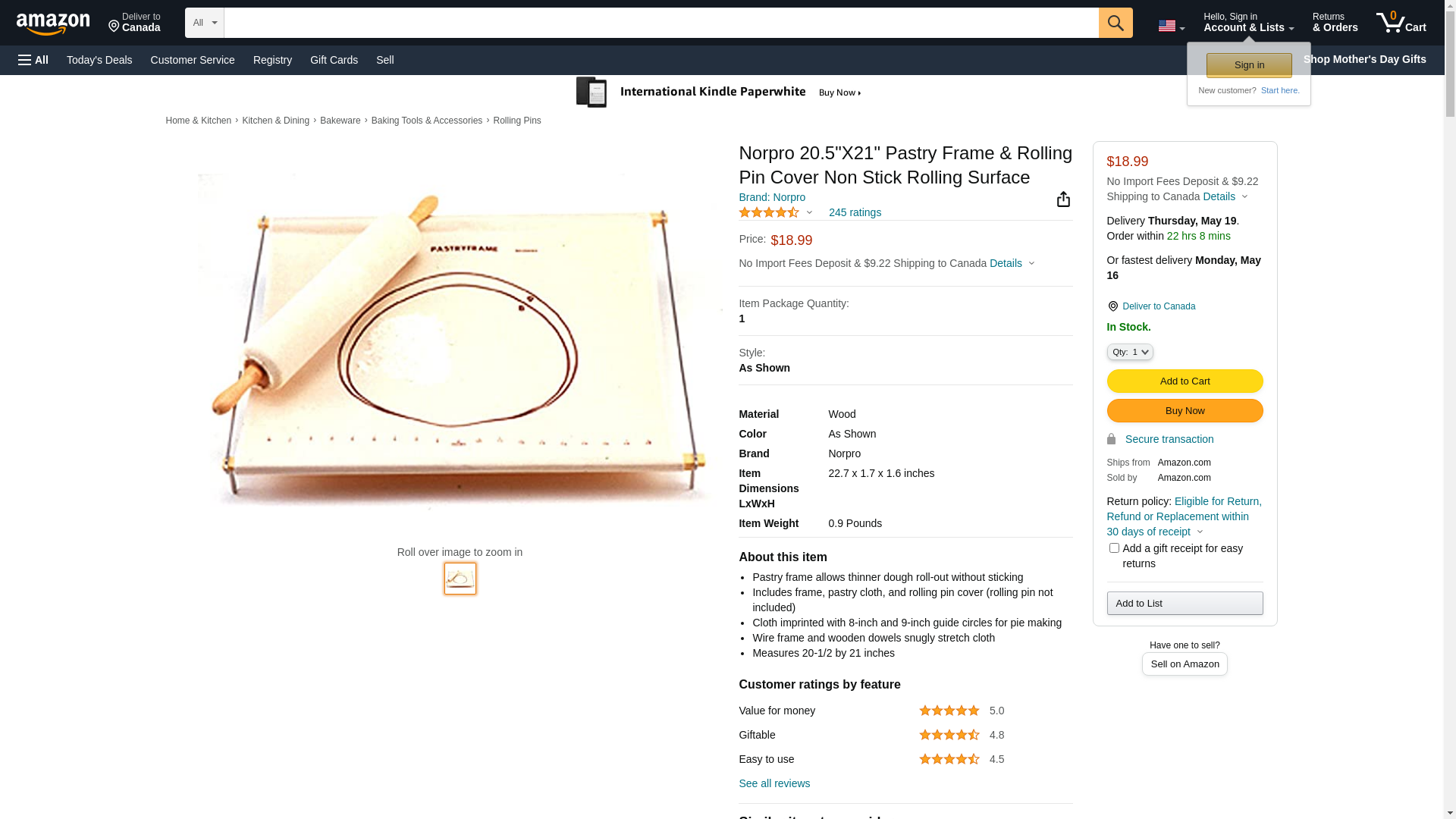 Norpro 20.5"X21" Pastry Frame & Rolling Pin Cover Non Stick Rolling Surface 3096. Pastry frame allows thinner dough r...