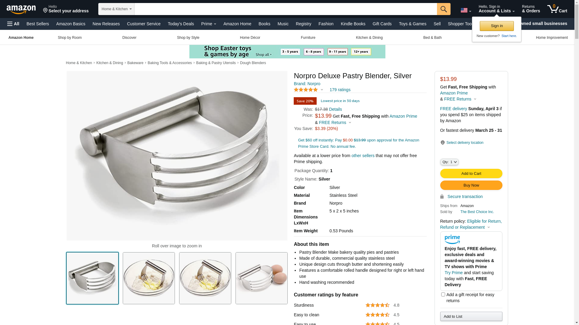 Norpro 3247 Deluxe Pastry Blender, Silver. Pastry Blender Make bakery quality pies and pastries. Made of durable, com...